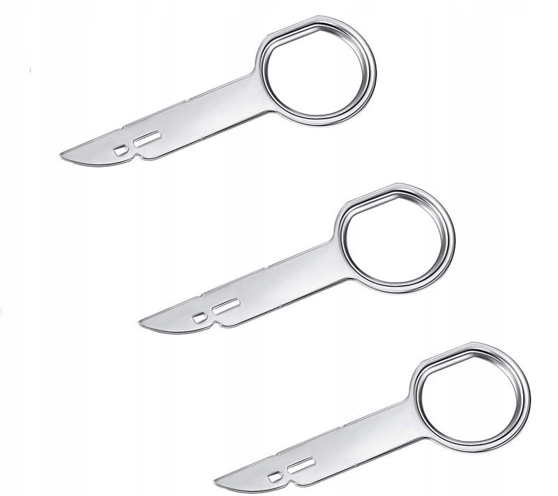 Stalowe klucze do wyjmowania radia – zestaw 4 sztuk. Umożliwiają szybki i bezpieczny demontaż radia samochodowego bez uszkodzenia tapicerki. Uniwersalne, trwałe i wielokrotnego użytku.